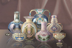 I have done a lot of vase grouping compositions and they are meant to convey esthetic pleasure, a pure joy at seeing an explosion of bright colors, light and reflection, a static beauty of still life.